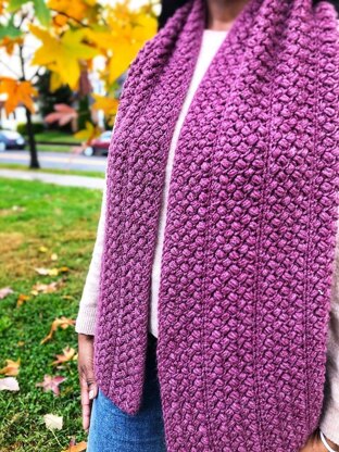 The Captain's Row Scarf uses slightly over 4 skeins of Lion Brand® Wool-Ease®. It consists of repeating sections of bean stitch and single crochet rows that creates a fabric reminiscent of cobblestones. When I was deciding on a name, I instantly thought of nearby Old Town Alexandria and its historic features. Captain's Row is the cobblestone stretch of Prince Street lined with 18th century row homes found in the heart of the town.