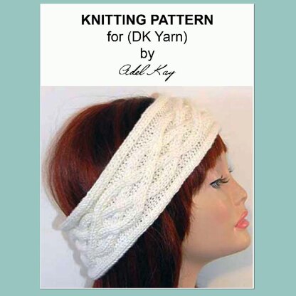 Cara Aran Cable Ear Warmer Wide Head Wrap Head Band Headband DK Yarn Knitting Pattern by Adel Kay