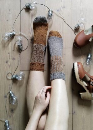 The pattern is pretty simple, so for spice up things I used two colours and I made the two socks different. Of course, you can make the same colour pattern for both socks. There are two size available in the pattern. Keep in mind that if you use a different yarn, especially if the yarn is 100% wool, the socks can be smaller. This yarn, due to its composition, is quite stretchy.