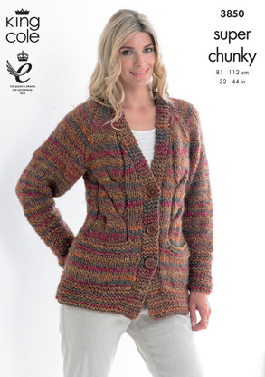 Cardigan and Top in King Cole Super Chunky - 3850 is a Knitting pattern by King Cole, available as a Leaflet and includes instructions in English. Super fun to make, this pattern could be your next masterpiece!