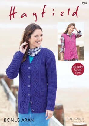 Cardigan and Waistcoat in Hayfield Bonus Aran - 7900 - Downloadable PDF is a Intermediate Knitting pattern by Hayfield, available as a Downloadable PDF and includes instructions in English. Super fun to make, this pattern could be your next masterpiece!
