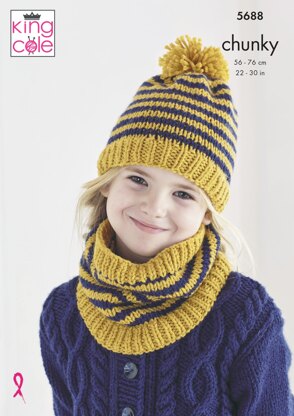 Cardigan, Hat and Snood Knitted in King Cole Ultra-Soft Chunky - 5688 - Downloadable PDF is a Intermediate Knitting pattern by King Cole, available as a Downloadable PDF and includes instructions in English. Super fun to make, this pattern could be your next masterpiece!