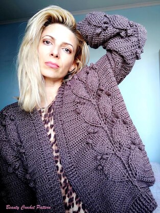 Cardigan "Leaves" is one size open cardigan pattern with beautiful 3D leaves and bobbles.