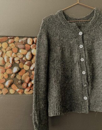 GARMENT CONSTRUCTION: The lightweight cardigan is worked seamless in the round from the top down. Circular yoke is worked first to underarm then body and sleeves are separated before body is finished. Sleeves are worked in the round. Button band and Neckband are finished last.