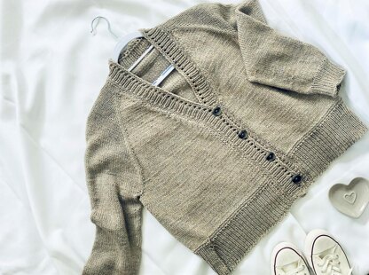 **NEEDLES:**4mm long circular for body 3.5mm long circular for hemline and button band 4mm short circular or DPN for Sleeves 3.5mm short circular or DPN for Cuffs