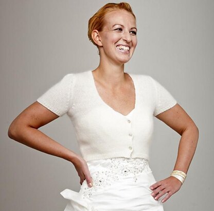 Catena wool With model photo and cut You need: Catena Merino wool from Katia: size XS 6 kn. 150g, size S 7 kn. 175g, size M 8 kn. 200g size L 9 kn. 225g, size XL 10 kn. 250 g 3 buttons Color Available colors Merino: white. Catena Merino by Katia white: 78% Merino extrafine superwash, 22% polyamide, 25 sizes, 110 m. knitting techniques Stockinette stitch, Rib pattern, Raglan, Buttonholes. Glam up your big day with this gorgeous short sleeve button down bridal jacket. These knitting instructions are perfect for knitters to knit a classic and timeless jacket for brides from soft merino yarn. The jacket goes with the bridal skirt or wedding dress for your dream wedding!