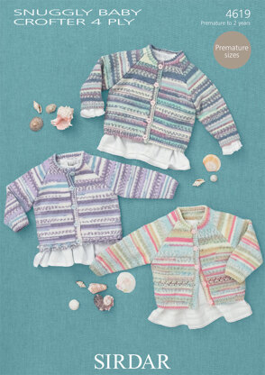 Cardigans in Sirdar Snuggly Baby Crofter 4 Ply - 4619 - Downloadable PDF is a Knitting pattern by Sirdar, available as a Downloadable PDF and includes instructions in English. Super fun to make, this pattern could be your next masterpiece!