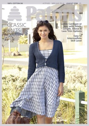 Cardigans & Vests in Patons 100% Cotton DK - 3769 is a Knitting pattern by Patons, available as a Leaflet and includes instructions in English. Super fun to make, this pattern could be your next masterpiece!