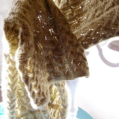 Made up of panels surrounded by straight and wavy garter stitch edges, makes it ideal for someone who has found the prospect of working huge swathes of lace a little daunting. The pattern is written in 'bite-size' chunks for ease of use.