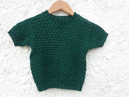 CARLA NOBLE - a beautiful and cosy striped jumper with drop-shoulder sleeves in a textured pattern in DK-weight cotton for kids. To work in rounds until armhole OR you can work the back and front flat separately. For the sleeves to pick up stitches along armhole OR to work the sleeves separately and then sew in. Both sleeve types are worked flat. Also a nice design plain coloured. In boyish colour-ways it's called CARLO.