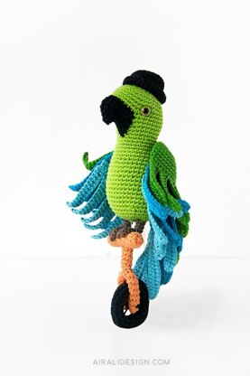 | One size only: | Parrot: 16 cm / 6.5 in tall (19 cm / 7.5 in up to the end of the tail) Unicycle: 9 cm / 3.5 in high |