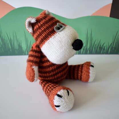 Carlton is a cuddly tiger with soft claws, perfect for hugs! Knitted in stockinette and stripes, this tiger is worked in acrylic yarns so it is easier to keep clean after play. Designed by Amanda Berry @fluffandfuzz, the tiger is knitted on single pointed needles (not in the round). For confident beginners and above, other techniques used include casting on and off, knits, purls, increases and decreases, and seaming to finish.