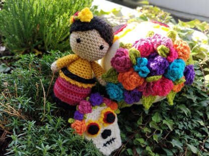 Carmencita and Dia de los Muertos Flower Skull crochet Amigurumi doll