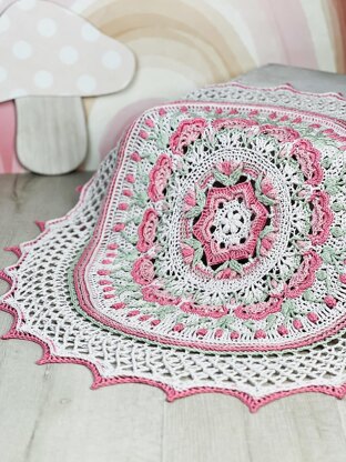 Yarn Amounts: 5 ply/Sport weight, Shown in Drops Safran Stone – A (2 skein, 100gr), Light Pink – B (1 skein, 20gr) Dark Pink – C (1 skein, 25 gr Green – D (1 skein, 35gr) {Suggested color changes are included in instructions for using NEW yarn.}