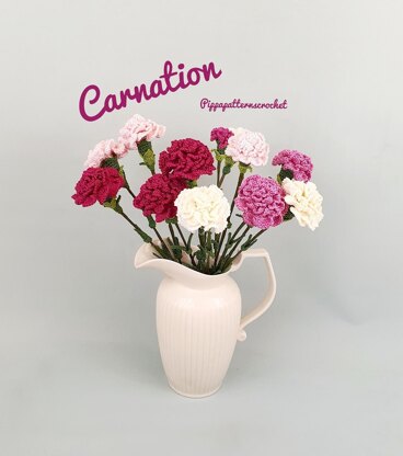This is a crochet pattern for a Carnation Flower. The Instructions are in American Standard Terms and include: Easy to follow Step-by-step instructions and detailed photo guide with 100 + high resolution images that will explain each step on how to crochet and assemble every part of this Flower, Half open flower, Budding Flower and 2 sizes leaves. Full List of Materials needed are included in the pattern. Skill Level: advanced beginnerMeasurements: Using the recommended yarn and following the tutorial your finished Product will be: The flower head will measure approx. 3”(7.5cm).