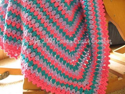 Looking for a cute and contemporary baby afghan pattern for that special new arrival? My Carnival Baby Blanket is just the thing! This fun blanket is crocheted in the round and is very versatile. Mix and match as many or as few colors as you want to achieve a personalized look. The repeating stitch pattern is easy to learn, and you can work as many rounds as you want to make a larger or smaller sized afghan! Depending on the colors used, this pattern is suitable for crocheting blankets for both boys and girls.