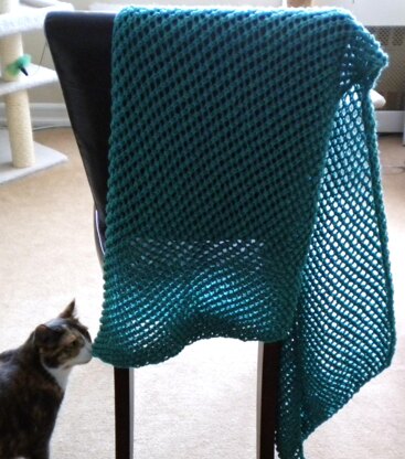 A knitted mesh wrap. I used a soft medium weight yarn which created a beautiful drape and supple feel. Gauge is not important with this pattern. It is worked from side to side so you can adjust the length. Any medium weight yarn can be used. One Size 16" wide x 66" long. Skill Level: Easy. Knitting Needles: US 8