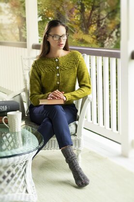 Update your fall wardrobe with this modern take on the traditional cabled cardigan. The sweater is kept minimal with stockinette stitch and ribbed edgings to let the cable around the yoke take center stage. This cardigan is knit from the top down with round yoke shaping that transitions to raglan shaping for a refined fit.