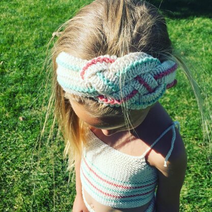 CARRIE headband is made by two knitted pieces tied by a sailor knot. It has a third smaller piece with an elastic band inside, so it can be used by kids an adults. The yarn needed for this project is so small you can make it with leftovers. Design your own style and share with us ;)