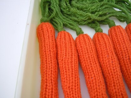 Carrots with Greens are knit in the round and measure 7 inches long.