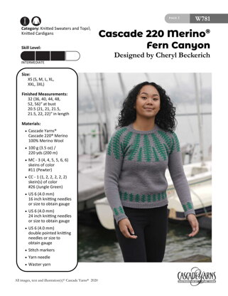 Cascade 220 Merino Fern Canyon in Cascade Yarns - W781 - Downloadable PDF is a free Intermediate Knitting pattern by Cheryl Beckerich, available as a Downloadable PDF and includes instructions in English. Super fun to make, this pattern could be your next masterpiece!