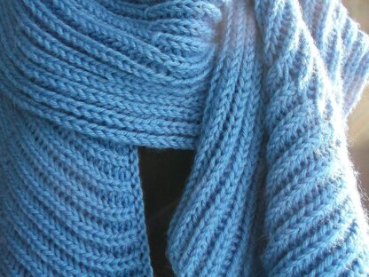 Cascade’s “Pacific” is used to knit this garment. Short rows create a beautiful drape in this brioche stitch scarf. It can be worn in several ways. Open it out and wear as a shawl, or wrap it around your neck for a cosy scarf.