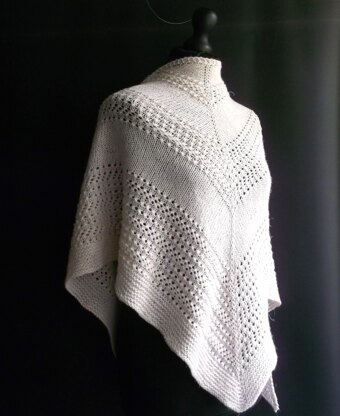 This pretty, top down triangular shawl uses stocking stitch and pebble stitch.