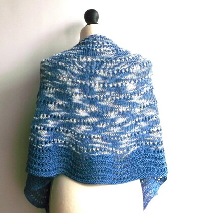 For spring/summer, Cascade Yarns Noble cotton and Noble cotton Tie Dye are both used to knit this pretty shawl. Rows of eyelets, simple increases and a feather and fan border make an enjoyable interesting knit.