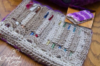 Show off your love of crochet with this uniquely designed hook case! This case can hold up to 12 hooks and with the stretch Boutique Unforgettable yarn has, this case will hold most clay handled hooks. The compact design allows for perfect on-the-go capabilities.
