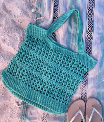 Pattern provides instructions for two different sizes: tote (15” by 17”) and extra-large beach bag (20” by 17”). The tote is perfect for a beach bag for one person or to take to the farmer’s market. The extra-large beach bag is large enough for the whole family. It can hold at least four large beach towels.