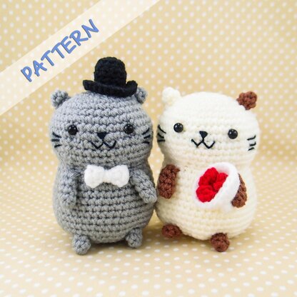 | One size only: | Using fingering yarn with 2.5mm hook will produce a female cat of about 7.6cm/3in tall and a male cat of about 9.2cm/3.6in tall (including hat). |