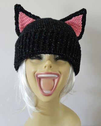 This snug-fitting beanie is written in 5 sizes: XS to XL – infant to large adult. It can be made with or without the ears.