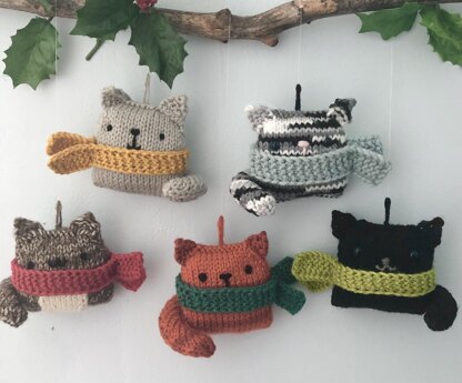 Merry Christmas!!! This PDF pattern will instruct you on how to knit my original 2021 Cat Christmas Ornament. Pattern includes instructions to knit multiple variations of the cat ornament. Ornament without scarf- 3.5 inches wide and 3.5 inches tall. Materials: Worsted Weight yarn: Use any worsted weight yarn for the cat- solid, or variegated. (For the Ginger cat, I used a light orange and a dark yarn.) Choose a worsted weight yarn for your scarf * Optional- if you choose to make a Tummy Patch, choose a worsted weight yarn for that. (I used white or off-white yarn for my tummy patches.) Poly-fill stuffing size 3 (U.S.) Straight knitting needles Yarn Needle Thread (or yarn)- black, grey, or pink for embroidering face details *Optional- you can also use safety eyes for your cats, make sure to use small eyes 6-8 mm size. Techniques: Knit and Purl Stitch Casting on and casting off Increasing Decreasing