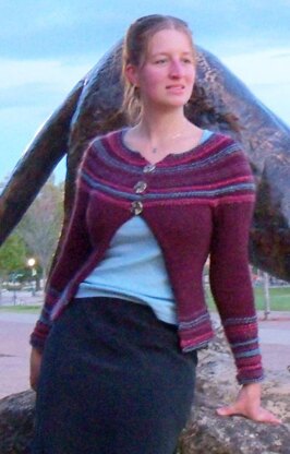 Catamount is a cardigan with buttons at the top and an A-line front opening. The stripes of color are highlighted by changes in texture which involve working both knit and purl rows on both the right side and wrong side of the fabric. Catamount will be perfect for wearing around campus on a chilly fall day in Burlington VT, or to keep you warm no matter where you are!