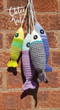 Catch of the Day - This quick and easy hanging fish pattern will certainly get you hooked! It's great for using up odds and ends of left over yarn. You can make your fish as bright and colouful as you like or you can use a contrasting wool to compliment your home decor. Have a keen fisherman in your family? then this would be the perfect gift/make for them. A good fisherman always catches more than one fish... I hope you have lots of fun making more. Enjoy xxxx Chloe and Kato Crochet and Crafts.
