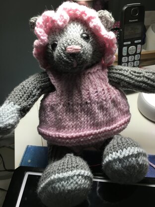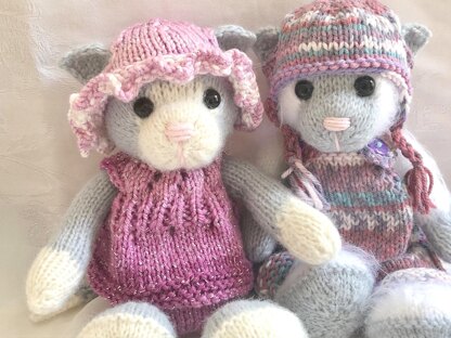 Cattytude can be worked in Aran/Worsted Weight and will measure 10 inches/26cms or Double knit/Lightweight worsted and will measure 9 inches/22cms, needle sizes recommendations are above. If you use Aran for Cattytude please use Aran for the outfits, if you use Double Knit for Cattytude please use Double Knit for the outfits.