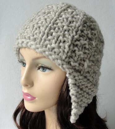 Ear flap style beanie for toddlers, children and adult/teens. Optional braided pigtails added. Easily completed in a few evenings.