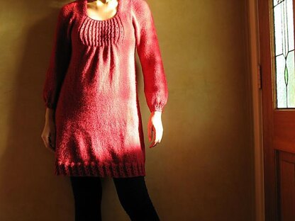 This A-line dress is worked from the top-down, using amazing Contiguous sleeve method developed by [Susie Myers][3]. This project will keep you busy till half way through with lots of fun techniques such as Contiguous method, SSE, Eyelet Rib stitch and gather stitch. The last half is mindless st st! The Eyelet Rib Lace stitch used at the front panel, bottom border and cuffs look like caviar to me!