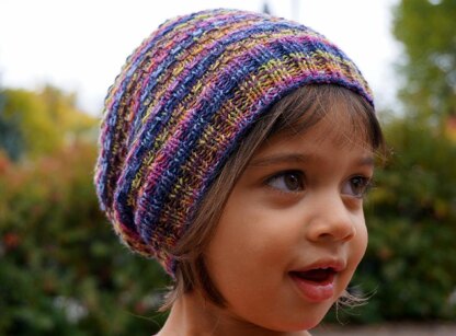 The stitch pattern in this hat reminds me of those old cedar shakes and makes me smile. It is a very simple pattern that's easy to memorize and repeat mindlessly while you think back on good days. The hat can be made as a snug-fitted toque or to be stylishly slouchy. Instructions are given for both fingering and aran weight yarn in sizes from Baby to Adult.