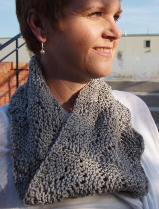 Celosia is a squishy lace garter cowl with an easily memorized lace pattern and scalloped edge.