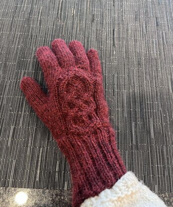 Celtic Gloves keep your fingers warm while allowing you to do all the things. More versatile than mittens and warmer than fingerless mitts, these soft alpaca gloves feature a double infinity Celtic knot on the hand that forms out of the 2x2 ribbing. NOTE—yarn is very soft with a luxurious feel. For a harder-wearing glove intended for daily wear, substitute alpaca for wool