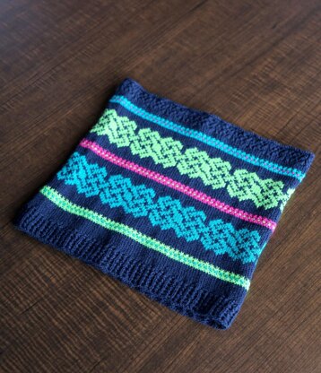 When I was a young boy, I lived in a rural area in the northern US, very near the border with Canada. On rare occasions we would see a nighttime light show that we called the Northern Lights. Years later I was fortunate enough to experience this again—when I lived in rural Ireland. The contrasting colors used in this cowl are very close to those that can be seen when the Aurora Borealis illuminates the northern sky.