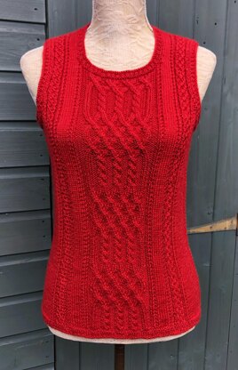 A really beautiful all-seasons slip-over that uses a lovely centre Celtic panel. If you love a touch of Aran cabling you will enjoy this knit too. The borders are in single rib and edged top and bottom with a purl ridge. The 2 smaller panels at each side are in a 4 row braid effect twisted pattern, easy to work and flattering to wear. Worked bottom up and with full written instructions.
