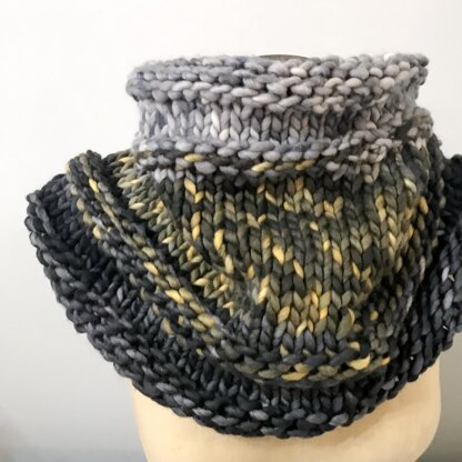 This cowl is designed to be that same journey of exploration in both texture and color. Giving you both the contrast and the beauty that Central Park gives NYC you can tell your own color story. It is reminiscent of the fade from the concrete pavement through the autumn leaves and up to that Gotham night sky.
