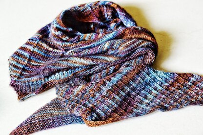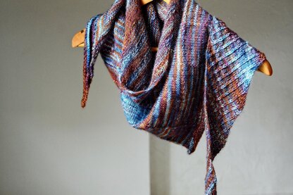 Pronounced kyol, it means music or the rhythm within us.A simple asymmetric triangular scarf using slip stitches for varied texture throughout the body.
