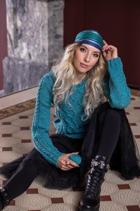 Named Ceol, Irish for music, is this straight pullover with Celtic cables that vibrates out into smaller cables and then flattens into stockinette stitch like rhythm. The sweater ends in a crew neck that is crowned with an I-cord. Unlike the body the sleeves only have two small cables at the center. Ceol is knitted in pieces in the airy Norwegian combed wool yarn Ask from Hillesvåg Ullvarefabrikk.