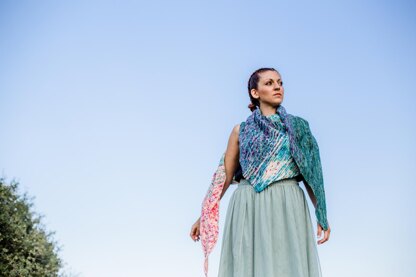 The Chamarel Shawl is an asymmetrical kite shawl perfect to bring you JOY and HAPPINESS! Spring is around the corner and why not prepare a new shawl using all our left-overs? It is an ideal shawl to use all your beautiful yarn, you can use as many colors as you want! You can even use 2 strands of lace yarn together and in this case, you can do something that looks amazing, m! Use lace yarn Color 1, double held together. After some rows, change one of the 2 strands with another color, having in your hands one strand of Color 1 and one of Color 2. After some rows, knit with 2 strands of Color 2 and keep on this way… You can even use your fingering yarn and in some parts 2 strands of lace weight yarn together! Just take your yarn skeins, all these beautiful yarn and all the left-overs and put them one next to each other to match them and start knitting!