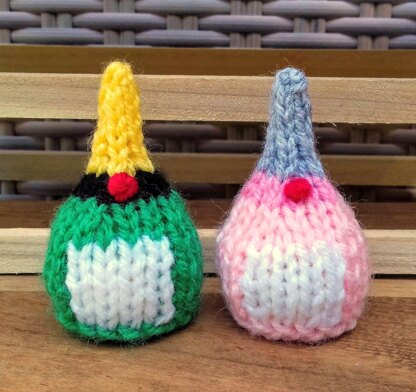 Each champagne bottle is knitted in minutes in one easy piece, using straight needles and tiny oddments of leftover DK yarn.