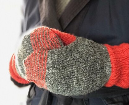 The mittens are worked in the round and have an afterthought thumb. (link to tutorial in pattern). They are decreased at the top before being grafted closed (link to tutorial on Kitchener Stitch in pattern).