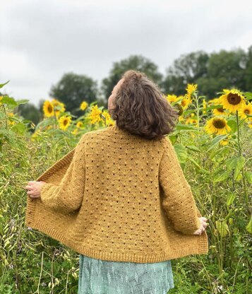 A soft and warm cardigan with V-neck shaping and ribbed edgings and a textured stitch pattern.